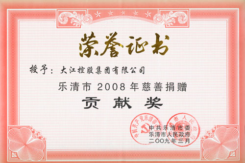 汶川大地震發(fā)生了,集團在第一時間把10萬元送到災(zāi)區(qū)人民的手里,愛心在傳播,感恩的心在沸騰,一股股愛的暖流撒向四方。在2009年3月10日上午,大江電氣集團被市政府評為2008年“慈善一日捐”活動貢獻獎,董事長陳耀哲說:這是榮譽,但更是我們的責任。
